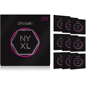 Gauges 9-11-15-24-32-42. This is a pack of 10. D'Addario NYXL guitar strings will bend farther, sing louder, and stay in tune better than other strings. Envisioned, perfected, and manufactured by D'Addario in New York, this newly engineered, break-resistant high-carbon steel core and plain steel alloy delivers a whole new level of freedom, confidence, and power. NYXL's provide more strength and 131% more tuning stability by utilizing a completely reinvented wire drawing process and revolutionary corrosion-resistant tin coating application. The reformulated nickel-plated string windings have greater magnetic properties resulting in higher output and enhanced mid-range frequency response for more presence and crunch. The NYXL0942 set is designed for maximum flexibility.