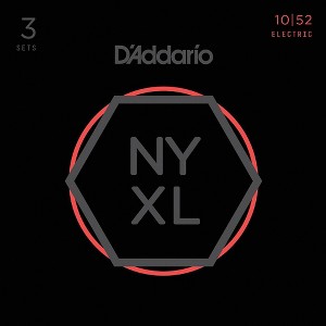 D’Addario NYXL guitar strings, like this 3-pack of NYXL1052 Light Top/Heavy Bottom electric guitar strings will bend farther, sing louder and stay in tune better than any string ’ve played before. Envisioned, perfected and manufactured by D’Addario in New York, this newly engineered, break-resistant, high-carbon steel core and plain steel alloy delivers a whole new level of freedom, confidence and power.NYXL’s provide more strength and up to 131% greater tuning stability by utilizing a completely reinvented wire drawing process coupled with a revolutionary “fusion twist” process for the plain steels. The reformulated nickel plated string windings have greater magnetic properties resulting in higher output and enhanced midrange frequency response for more presence and crunch.