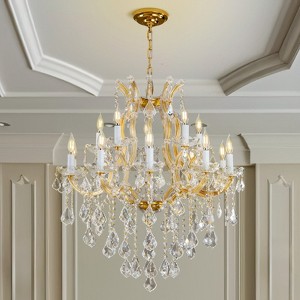 - Luxury gold crystal chandelier suitable for high and low ceiling, length: 28.74 in.:width: 30 in.:height: 35.5 in.:adjustable chian (max 59 in.) With 15 E12 bases(bulbs included), this modern crystal chandeliers is capable of give a luxurious and glamorous look to any space
