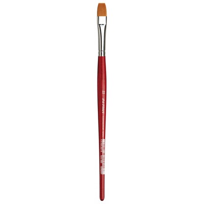 da Vinci COSMOTOP-SPIN Silkpainting Brush, Synthetic, Watercolor, Flat, Size 12, Pack of 2 | COSMOTOP-SPIN synthetics are great for watercolor, gouache, acrylic & ink. Spin holds more water than any other synthetic with a blend of 5 different diameters of extra smooth fiber ensuring the highest color-absorption of any synthetic brush. It has a sturdy construction and will retain its shape. Beautiful lacquered red handles and nickel-plated brass ferrules are rust proof. Hexagonal handles prevent the brush from rolling away. Certified green manufacturing with sustainable wood handles. Handmade in Germany at our family-owned factory since 1890. Sold as a pack of 2.