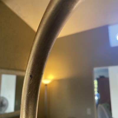 It's hard to see in the single picture, so here are some details I noticed when my lamp arrived. The lamp shade is textured with these little lines through it, which wasn't my favorite. The gold leaf finish is interesting and unique. I was expecting gold/brass, but they literally mean gold leaf. It's pretty and textural! The marble base is really heavy and lovely. We could not get all the joints (particularly at the base) to tighten enough to make it stop spinning anytime it gets touched. After attempting to re-tighten three or four times, we've decided to return.