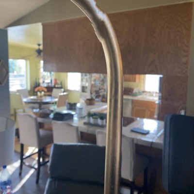 I really want to like the lamp—it’s the perfect shape and size for our nursery but the finish is scraped off in a few areas and it’s a cheap-looking gold leaf. Also none of the pictures show the big black cord that has a step button to turn it on as opposed to a regular switch by the shade which isn’t convenient for where we need to put the lamp.