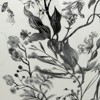 - White ceramic construction. Glossy finish. Black flower and vine patterns.