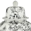 Upgrade your buffet or console with the charming decorative flowers and vines of this traditional ceramic ginger jar with a lid. It's a hand-painted design in black, on white ceramic construction for optimal contrast. The curvy jar and its lid feature a glossy finish and are designed for decorative use and not safe for food or other consumables.