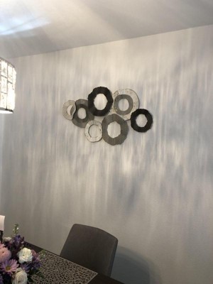 With an ethereal floating motif and cool neutral palette, this modern metal wall art offers an inspiring blend of art and texture perfect for a relaxed living space. This art from the Parade collection by Dahlia Studios joins delightful open circles fashioned of metal. Hand-painted finishes of gray, white, and taupe offer a cool aesthetic, adding plenty of design versatility.