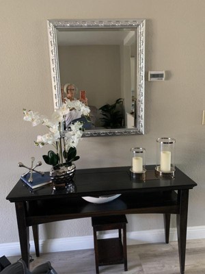 Dahlia Studios Potted Faux Artificial Flowers Realistic White Phalaenopsis Orchid in Silver Pot Home Decoration Office 23" High