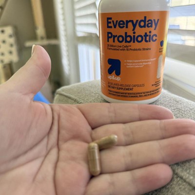 [This review was collected as part of a promotion.] This is the Everyday Probiotic supplement by up&up. It has a great price point. It is a clear capsule that is easy to swallow and does not have any after taste. I normally have issues when taking supplements or any type of medicine where it gives me an upset stomach shortly after taking it. These did not upset my stomach which was a relief. I have only taken these for about a week but I do feel they have helped with my digestive issues and I have had no negative side effects. I received an incentive to write this review.