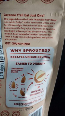 - FLAVOR: Nashville Hot Daily Crunch Sprouted Almonds