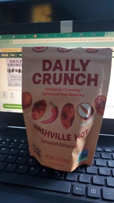 [This review was collected as part of a promotion.] Daily Crunch Nashville Hot Sprouted Almonds pack a flavorful punch! Spicy, crunchy, and addictive - a perfect snack for heat lovers. Highly recommend! Delicious addition to a salad! 🥗 🌶️🍴