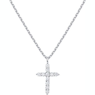 SmallRig Dainty Cross Necklace for Women, 14K Gold Plated or Sterling Silver Pendant Gold CZ Cross