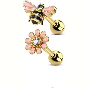 Daisy & Bee Cartilage Studs, Stainless Steel Piercing Jewelry