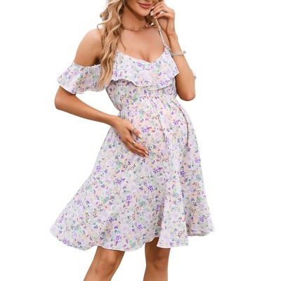 Maternity Nursing Dress Daisy Printed A-Line Tiered Flowy Swing Dress