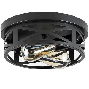- 【INDUSTRIAL GEOMETRIC DESIGN】This flush mount ceiling light features a black metal geometric cage design, blending industrial and vintage styles. It adds an artistic, edgy charm to any space, making it a stylish focal point.
