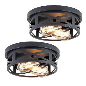 DAKAFUL Industrial Flush Mount Ceiling Light,Metal Round Cross Cage Ceiling Fixture with Rotatable Light for Bedroom/Kitchen(2-PACK)) - 1 of 4