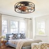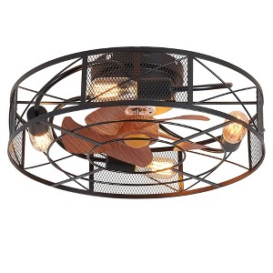 21inch vintage industrial small double cage ceiling fan with remote and 5 blade, 4 E26 light bases (bulbs not included), change to warm or cool light bulbs according to different styles, perfectly decorates farmhouses, industrial, vintage, rustic style homes. The retro hollow and reversible wind black flush mount ceiling Fan with light, pure copper motor provide 6 rank speeds with less resistance, less noise ≦ 40dbM (ideal sleeping enviroment). Semi-open design, easily replace the bulb and clean the fan blade, helps the motor to quickly dissipate heats makes fandelier safer and more durable, Easy to assemble