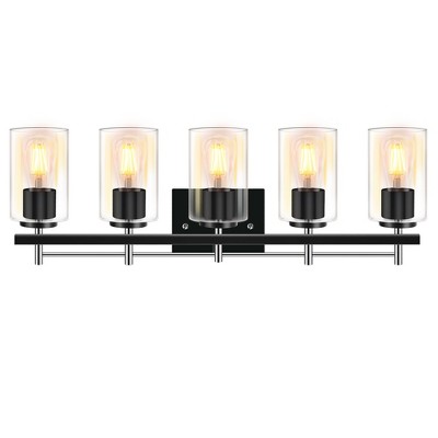 DAKAFUL 5-Light Modern Bathroom Vanity Light Fixture Over Mirror, Wall Sconces with Milky White Frosted Glass Shades,E26 Base, Copper
