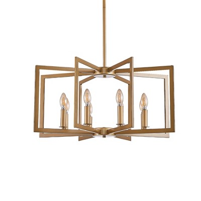 DAKAFUL Farmhouse Chandelier, 8-Light Iron Rectangular Cage Pendant Light, Rustic Ceiling Light for Foyer/Entryway/Living Room