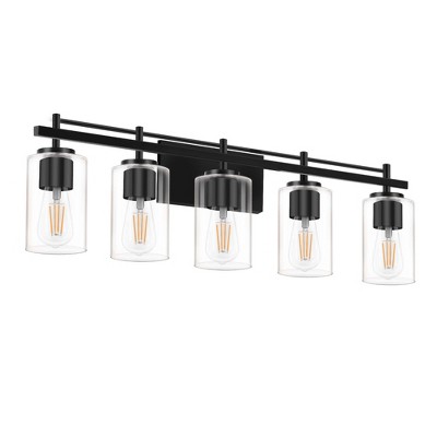 DAKAFUL Bathroom Vanity Light, 5-Light Vanity Fixture with Frosted Glass Shades,Reversible Wall Light Over Mirror, for Bathroom/BedroomBlack