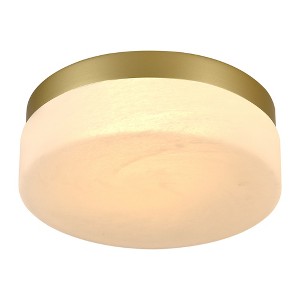 This modern flush mount ceiling light (11.4-inch diameter) has a slim circular design, fitting low-ceiling rooms and elevating residential/commercial spaces.Its body uses durable spray-painted hardware, and the shade is hand-blown white jade pickled glass¡ªensuring sturdiness and soft, non-glaring, eye-protective LED light.With 5 color temp adjustments (3000K-6504K, warm/neutral/cool), it suits bedrooms,kitchens,living rooms.Easy to install (accessories included), it matches modern minimalist,industrial styles.