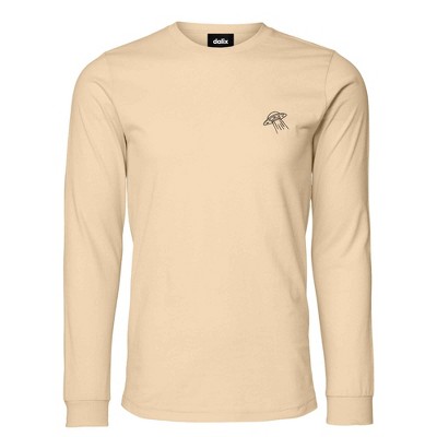 Dalix Alien Embroidered Cotton Classic Fit Long Sleeve Crewneck Tee Shirt Mens in Soft Cream 3XL XXX-Large