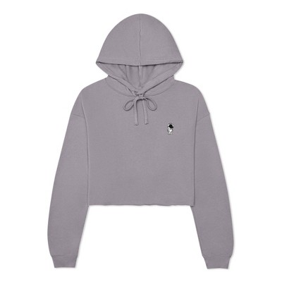 Dalix Alien Embroidered Fleece Cropped Hoodie Cold Fall Winter Women in Storm Gray M Medium