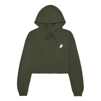 Step into whimsical comfort with our Women's Cropped Zip Hoodie, embroidered with our charming Ghost design. This hoodie redefines cozy chic, offering a contemporary silhouette that seamlessly blends warmth with style. Experience the freedom of movement with our Cropped Hoodie, with semi-set-in sleeves, while the single-line hood adds a touch of modern elegance. The dyed-to-match, full-length zipper not only completes the look but also ensures easy wear and styling convenience. This cropped masterpiece is more than just a hoodie; it's a fashion revolution. Its pocket-free, sleek design allows the embroidery to shine. Elevate your casual wardrobe with this statement piece that embodies both comfort and style. The Women's Cropped Zip Hoodie is a celebration of individuality through a luxuriously soft fleece with a cropped-length, it effortlessly layers over or under jackets, providing versatile styling options. Cropped Fit. Comes in color: Military Green. Size S