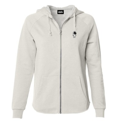 Dalix Ghost Embroidered Fleece Zip Hoodie Cold Fall Winter Women in Tan S Small