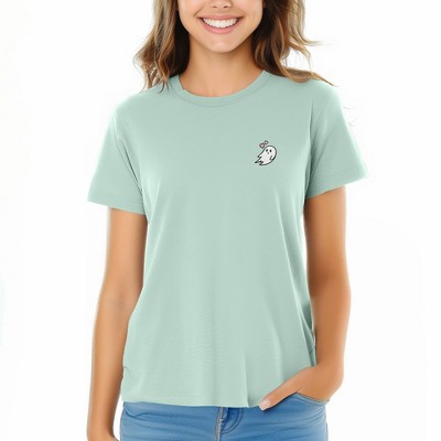 DALIX Heartly Ghost Embroidered Soft Cotton Short Sleeve T Shirt Womens - 1 of 4