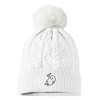 Stay warm and stylish with our cable knit beanie! This faux shearling lined beanie is perfect for your next snowy adventure or campus stroll. Whether you're hitting the holiday shopping scene or enjoying a bonfire night, our polyester knit beanie with a pom pom is your new best friend. Ideal for ice skating, winter hikes, or those chilly morning commutes, this beanie offers the ultimate blend of comfort and fashion. Capture the perfect winter moment with this cozy knit hat and make every day a photo op. One Size Fits Most. Comes in color: White