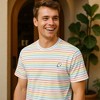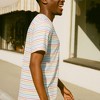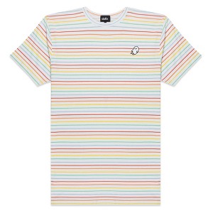 Upgrade your everyday style with this tee made from combed ring spun cotton striped jersey 30 singles that feels smooth, breathable, and built for movement. The shoulder to shoulder self fabric back neck tape gives it a clean finish that adds durability and comfort whether you are heading to class, grabbing coffee before work, or relaxing at home. The striped look makes it a go to choice for weekend trips where you need a reliable layer that still feels stylish. Take it to the gym as a light top, or pack it for vacations when versatility matters. It pairs easily with denim for casual nights out, slides effortlessly into beach outfits for warm afternoons, and works for study sessions at the library. The design keeps up during outdoor activities, making it a great pick for hikes, park days, or long walks around the city. Even concerts or festivals feel easier with a shirt that balances comfort and energy. When you want something for errands or just lounging with friends, the soft jersey and easy fit make it an instant favorite. Blending thoughtful details with modern style, this tee is more than just a striped shirt, it is a statement for everyday expression. Mens adult fit. Comes in color: Rainbow. Size Small