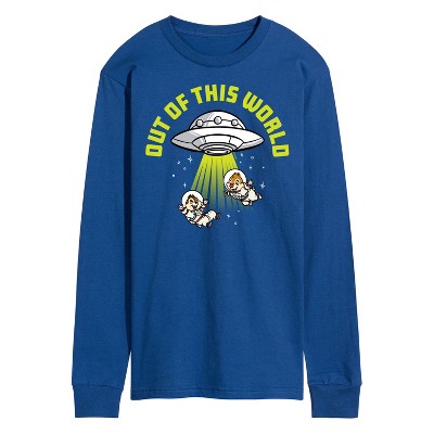 Embark on an otherworldly adventure with our UFO Long Sleeve Tee, a cosmic statement that fuels your style journey. This extraterrestrial emblem is perfect for those who believe in the magic of the unknown, adding an intergalactic touch to your everyday look. Indulge in the timeless comfort of our long sleeve jersey tee, designed to embrace you like an old friend with its classic crew neck and long sleeves. Crafted from premium combed and ring-spun jersey cotton, this tee provides the perfect canvas for everyday first layering. With features like side-seams, a retail fit, and ribbed cuffs, it's the epitome of effortless style and comfort. Relaxed Fit. Comes in color: Navy Blue. Size Medium