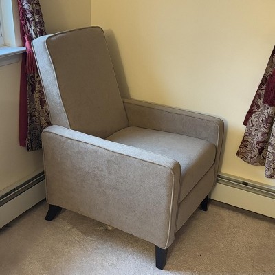 The recliner is just what I was looking for it has a modern design it’s very comfortable And sturdy and looks great in my den. I would recommend this recliner .