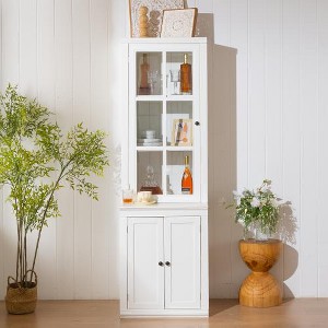 ACEPANO 23.65 in. W Freestanding Storage Cabinet with Glass Doors, Lattice Windows & Storage Function-White
