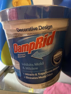 Don't just cover up odors, eliminate them with DampRid Refillable Moisture Absorbers. Think of DampRid as a dehumidifier that doesn't need electricity. These moisture absorbers are a convenient, effective way to absorb excess moisture in the air that can cause stale, musty odors. DampRid refillable moisture absorbers last up to 45 days depending on temperature and humidity level. DampRid inhibits mold and mildew with the power of Microban. The decorative design blends in with home decor. DampRid Refillable Moisture Absorbers are ideal for closets, bathrooms, laundry rooms, pantries, under sinks, and anywhere excess moisture and stagnant air are a nuisance. Keep out of reach of children. Do not use in moving vehicles. Do not allow product to contact leather or metal.