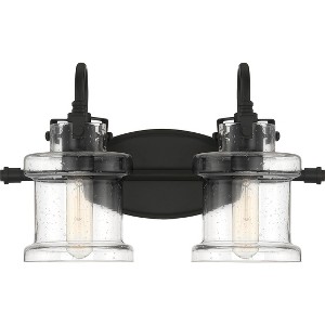 Traditional in design yet transitional in execution, the Danbury bath collection features clear seedy glass with a unique jar-like silhouette. The decoratively capped center rod supports gooseneck arms that secure the vintage-inspired shades with exposed latches. The versatility of the collection is further defined by its lustrous polished chrome, brushed nickel, or earth black finishes - all available in a variety of size options. Install with shades facing up or downwards to further customize to your desired vanity setting.