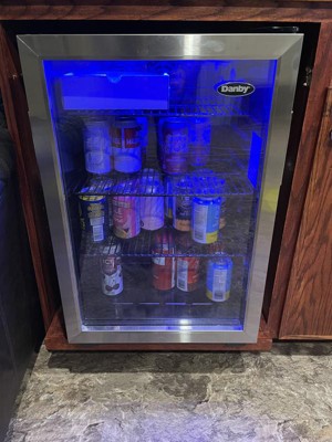 Nice little beverage fridge. Perfect for TV Room. Love the LED blue lights. Makes product look classy!