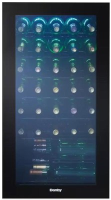 The best way to store and chill your precious wine collection is with Danby's fashionable and convenient free-standing wine cooler. This spacious unit is designed to store up to 36 bottles of your favorite wines on attractive black wire shelving. The blue LED interior lighting beautifully showcases the bottles through an elegant tempered-glass door designed to protect your collection from potentially harmful ultraviolet rays and displays your collection with pure sophistication. The temperature of the wine cooler will stay between 6^oC and 14^oC (43^oF and 57^oF) ensuring the bottles will always be at a temperature best preferred. This appliance features a discrete pocket-style handle and a smooth back design to allow the installation to be flush against a wall. The handy reversible door enables you to open it from the left or right-hand side. Includes a 12-month warranty on parts and labour with in-home service.