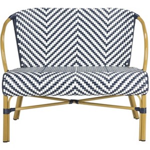 Introducing our stylish outdoor furniture perfect for your patio oasis. This piece is crafted with PE wicker and aluminum, offering a chic and modern look that will elevate any outdoor setting. The striking navy and white pattern adds a touch of sophistication, while its durable construction ensures you enjoy comfort in the open air. Whether you are lounging with a book or entertaining guests, this furniture piece brings both style and functionality to your outdoor experience. Transform your space with elegance and embrace the relaxation you deserve.