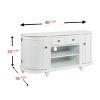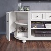 Invite classic to your living space with this white TV console. Movies and books stay organized behind curved cabinet doors, while a drawer and two open media shelves keep remotes and electronics front and center. Traditional trim details pair beautifully with your living room sofa or family den, creating a cozy place to unwind or entertain guests. Bring versatile storage and classic design to your home with this TV media stand.