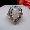 • The ring features a dazzling simulated Fire Opal as the focal point, set in a unique teardrop design, capturing the iridescent beauty of natural opals and ensuring you stand out in any setting.