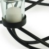 Danya B. unique round candle holder is perfect for adding some magical glow of candlelight to your indoor or outdoor table. Its circular design makes it an ideal centerpiece to be used by itself or in combination with a floral arrangement. Use it to decorate around an umbrella in a patio table. Candleholder is made of wrought iron in black finish and comes complete with six clear votive glasses. For use with tea-light or votive candles (not included). This candleholder's mesmerizing design brings sophistication and charm to any space. Its perfect combination of circular wrought iron construction with clear votive glasses gives you an eye-catching centerpiece that will brighten up any gathering. Make your moments special with this one-of-a-kind candleholder!