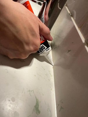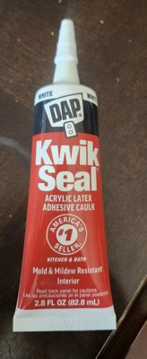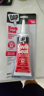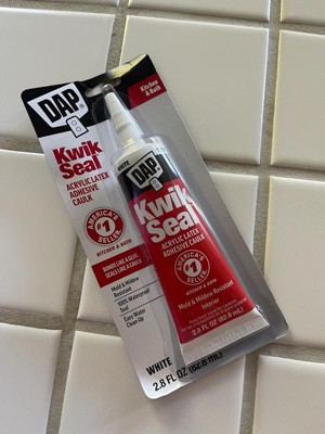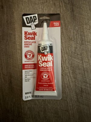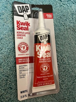 DAP Kwik Seal Kitchen and Bath Caulk "Bonds like a Glue and Seals like a Caulk". This go-to solution is great for resealing a faucet, touching up tile or resealing a sink. Kwik Seal provides a durable, watertight seal. Once cured, it is mold and mildew resistant. It is easy to appply, paintable, low in order and cleans with with water. Interior Use.