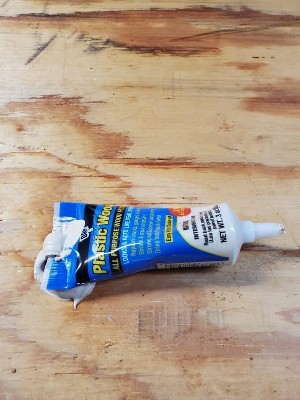 i bot a 6 Oz tube of white and used it once less than a year later went to use it and it so dry its hard to get out of the tube. online chat says i can add water a knead it around. prob push hard material into the tube and add water but i will stick to glue and saw dust