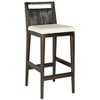 Instant holiday. Furnishings at five star resorts in the Maldives inspired this casual Darin Bar Stool. Minimalist geometry and clean lines complement their finely crafted brown rattan and mahogany body and crisp white cotton cushions.
