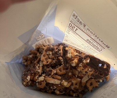 This is just a bag of broken pretzel pieces all clumped together in one big ball. Very little caramel or chocolate. Will not repurchase.