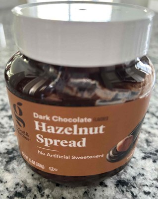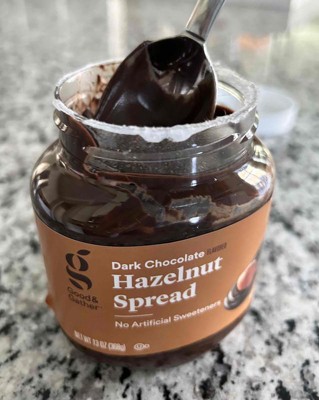 Stock up on a versatile pantry staple with this Dark Chocolate Flavored Hazelnut Spread from Good & Gather™. Sweet, buttery hazelnut and smooth, rich cocoa come together to create a delicious family-favorite spread. For a tasty start to your day, add a spoonful or two to a smoothie, or add some to your favorite toast or bagel. Made with no artificial sweeteners, this dark chocolate flavored hazelnut spread makes a satisfying snack, even if it’s just a spoonful right out of the jar.