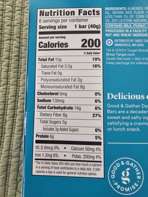 These 6-Count Dark Chocolaty Nuts & Sea Salt with Other Natural Flavors Nut Bars from Good & Gather™ will help fuel your busiest days. These nut bars are made with almonds as the first ingredient, and dark chocolate and sea salt add decadent flavor. Featuring 6 grams of protein*, these gluten-free bars will help you stay energized no matter where the day takes you.*Contains 15g Total Fat per Serving