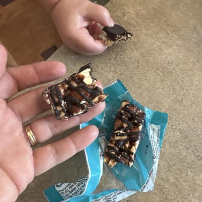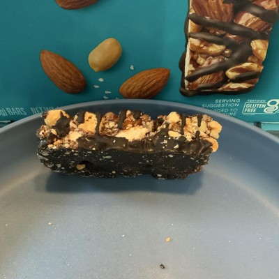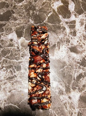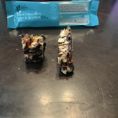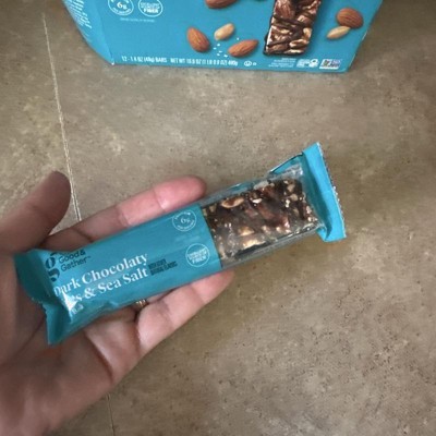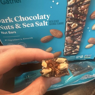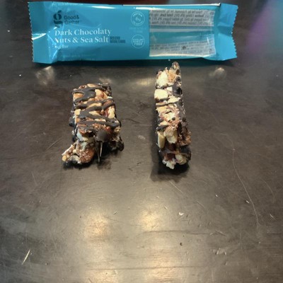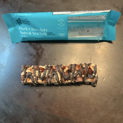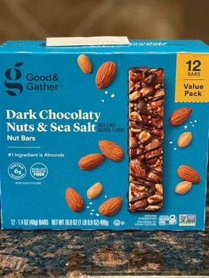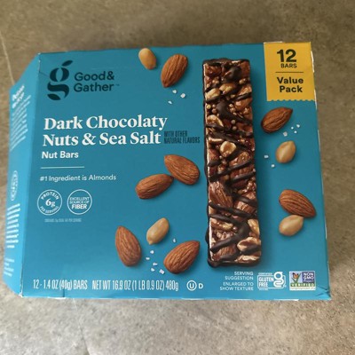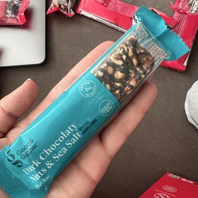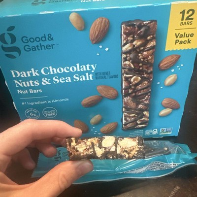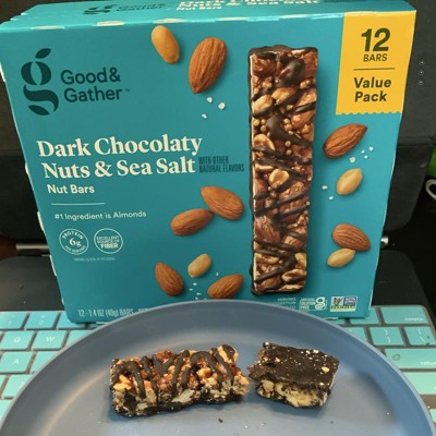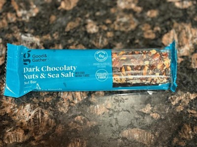 Good & Gather Dark Chocolaty Nuts and Sea Salt bars are my new favorite snack. They aren't too sweet and have a great crunchy texture. They provide fiber plus 6 grams of protein per bar. They are easy to grab and carry in my purse for an instant snack. Highly recommend!