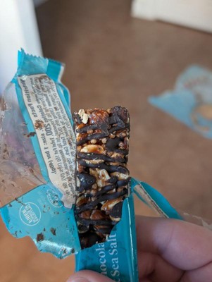 Great flavor and good balance between the nuts, dark chocolate, and sea salt. The texture of the bar is a bit tough and crunchy though.. you can't take a bite of it without it breaking. It's a bit messy when it breaks.