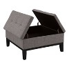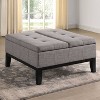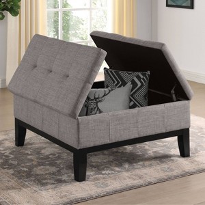 Effortlessly connect the tapered feet of this ottoman to have a footstool in your living room. The button-tufted light gray upholstery is a multifunctional cushion. Use it as a seat or open the lift-top design and store extra blankets for cozying up in the evenings.